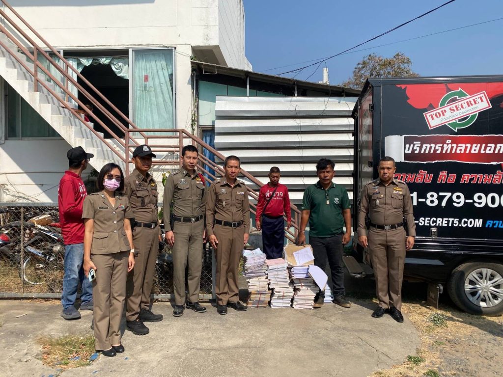 งานอำนวยการ 2 มกราคม 2568 โดย admprathai / ผลการปฏิบัติงาน,มกราคม 2568 วันที่ 6 มกราคม 2568 เวลา 13.00 น. พ.ต.อ.สัญชัย พิสัยพันธ์ ผกก.สภ.ประทาย ได้เรียกข้าราชการตำรวจในสังกัด สภ.ประทายร่วม คัดแยกและทำลายเอกสาร โดยใช้บริการของเอกชน FacebookFacebook